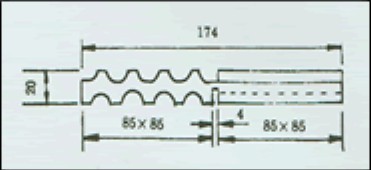 (長 X 寬 X 高 單位:mm)基本塊為173 X 173 X 20 = 1塊。|85 X 42.5 、85 X 85、131.5 X 85、174 X 85、220.5 X 85、263 X 85、174 X 174、263 X 174等,可以基本塊為單位。根據需要任意拼裝,每一基本塊使用的橡膠硬度又分為40°、60°、80°、三種規格,以適應不同垂向設計負載。